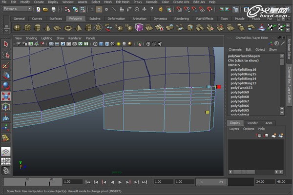如下圖所示,選擇鞋子兩側的一些點,使用縮放工具將它們向內收縮。