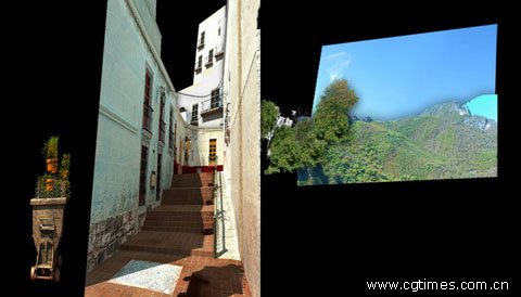 我結合了不同照片的建築、色彩以及氣氛來製作自己的場景。