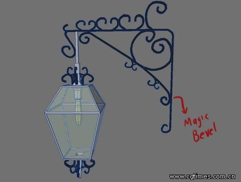 我盡量降低場景的多邊形數量 - 圓柱體用5個麵來概括,路燈使用方塊+切割,鐵藝支架的曲線造型使用 magic shift 製作。