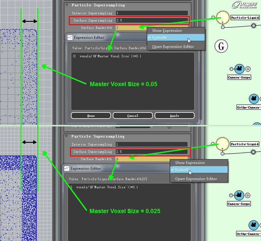 這樣的表達式用法我也經常用在particle-liquid上來控製Surface SuperSampling的厚度,以下的解釋也許能夠幫助更確切的理解為什麼要用到這樣的表達式,如圖9: