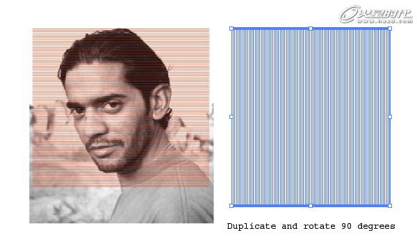 選擇所有的線條,按Alt+鼠標拖拽,製作線條的副本。下一步,副本旋轉90度,把它暫時放在畫板的一邊,之後我們會用到它。(圖06)
