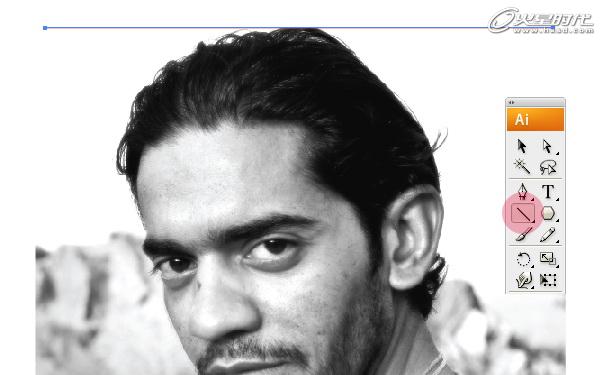 使用直線段工具(),繪製一條水平線,寬度比圖片(描摹區)寬一點。把它移到描摹區的頂部,描邊顏色:使用對比度高的顏色。(圖03)