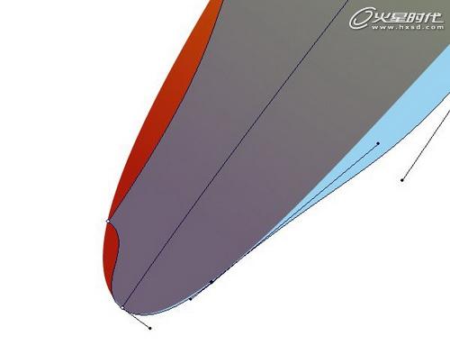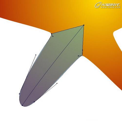 9、使用網格工具增加一條漸變網格線並嚴格遵從光源進行著色。高光:亮黃色;中間調:橙色;陰影:紅棕色。(圖23)