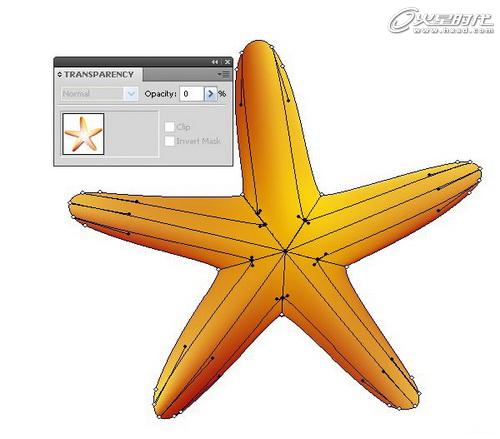 在圖層麵板上,鎖定之前的網格對象避免相互間的幹擾。像在Adobe Illustrator CS5中一樣,使用索套工具選中位於海星中心的點。(圖29)