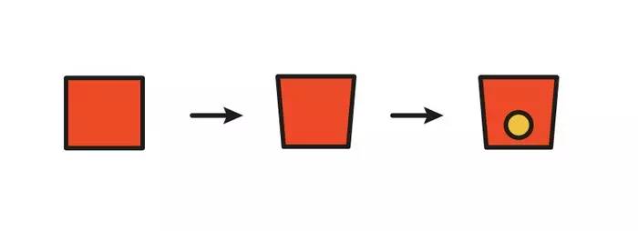 繪製一個86x156px的矩形(顏色:#F04903),描邊為6px。用直接選擇工具(A),選擇下方的錨點,將其向內移動10px,進行梯形化。