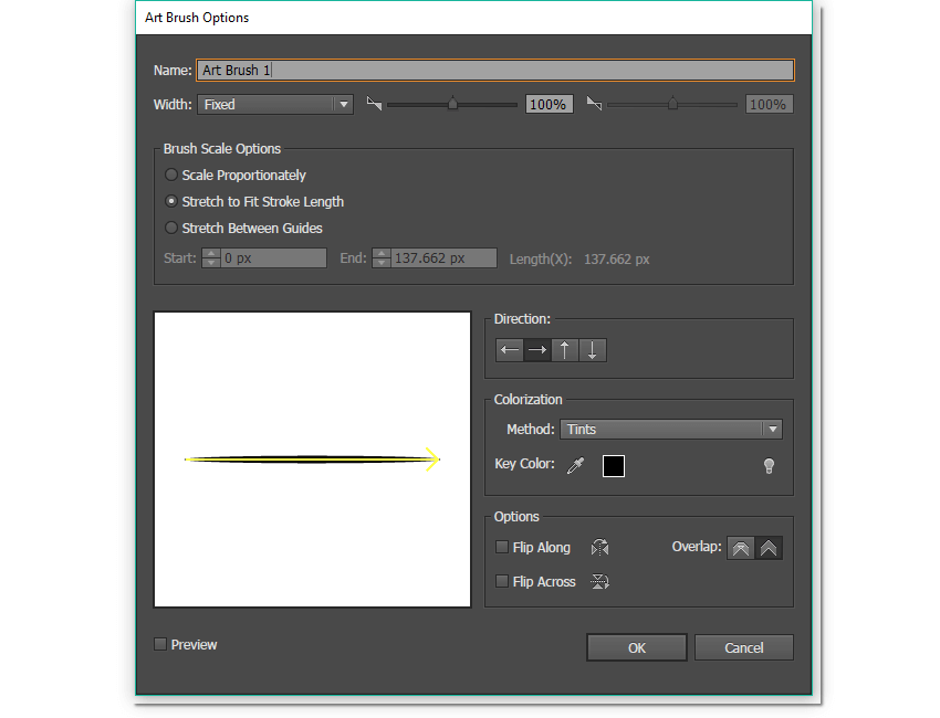將此橢圓移動到“ 畫筆”麵板,將出現一個新窗口,選擇新藝術畫筆,然後按OK。