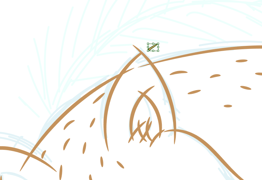 在睡覺的狐狸附近添加一些雲杉枝。為了更好的區分,可以更改筆觸的顏色,現在草圖就完成了。
