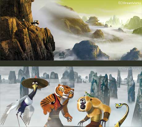 淹沒於色彩和技術的複合體,夢工廠給我們帶來了他們的又一個動畫電影——《功夫熊貓》。此片從2003年開始製作,電影介紹了一批穿著衣服並有濃密軟毛(或者羽毛)的動物。不隻是靜坐、大笑、做夢和學習,它們還戰鬥在一個可擴展性環境的各個角落裏。