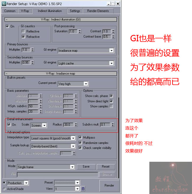 最後再說說AO的問題,先渲一張質量比較低的為了和後麵的比較。