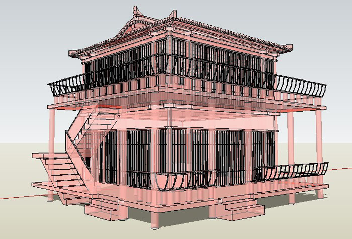 接著一邊創建模型,一邊修改平立麵圖紙。通過前期的材料收集,在創建的時候注意結構的支撐。