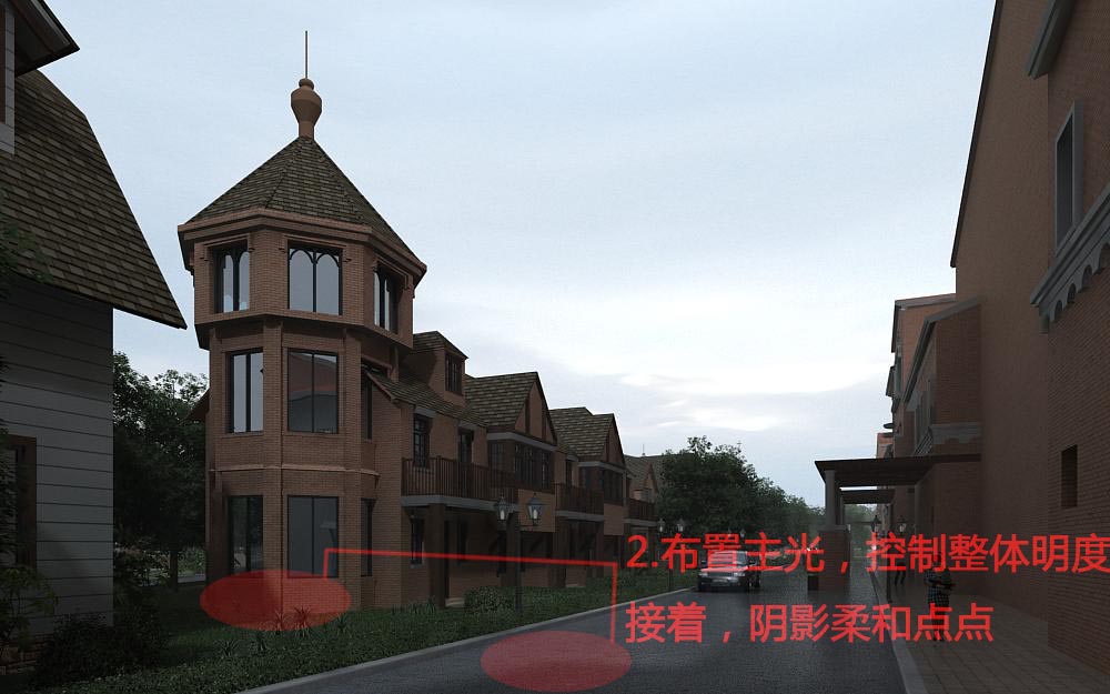 3、布置室內光,使室內暖光和室外冷光形成強烈的冷暖對比。