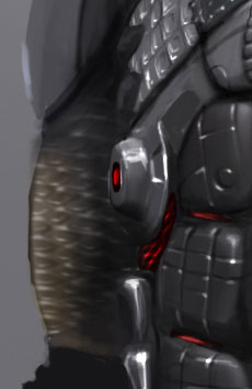 右臂上的鱗甲是複製了左邊的。但是加入了反光的顏色。然後加入整體的反光