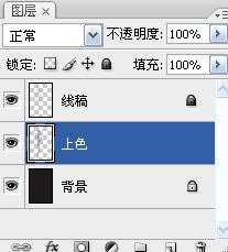在線稿和背景之間新建一個圖層來上色,上色使用邊緣模糊的噴槍柔邊圓形畫筆。