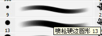我用到的畫筆是PS自帶的“噴槍硬邊圓形”畫筆,有9和13兩種大小(當然用哪個無所謂了,自己可以調整大小),這個畫筆的特點是邊緣不會隨著數位板的壓感而變化,僅僅是透明度隨著壓感變化。在此基礎上還要進行調整,打開畫筆麵板,選擇“畫筆筆尖形狀”,在右邊的麵板中將“間距”調整為一個更小的值,我通常調整到5%到10%之間。這樣會使筆觸更連續,否則如果運筆快的話,會產生一個個的圓點。