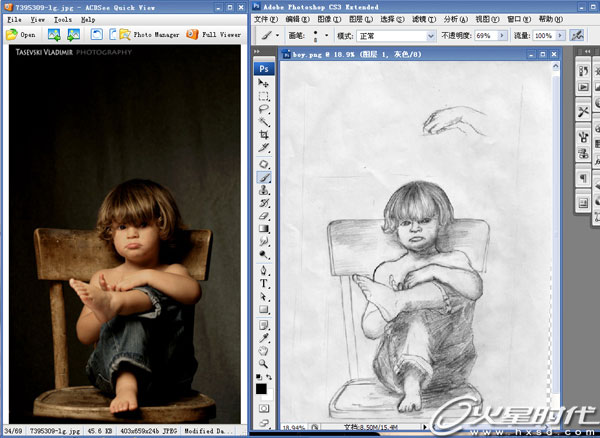 我建議想臨摹照片的人在選擇照片上一定要精心挑選,如果是剛開始,最好選結構簡單的,色相比較單一的。另外,最好找一副你覺得非常有吸引力的照片,這樣你才會在臨摹的時候投入感情,有很大動力。